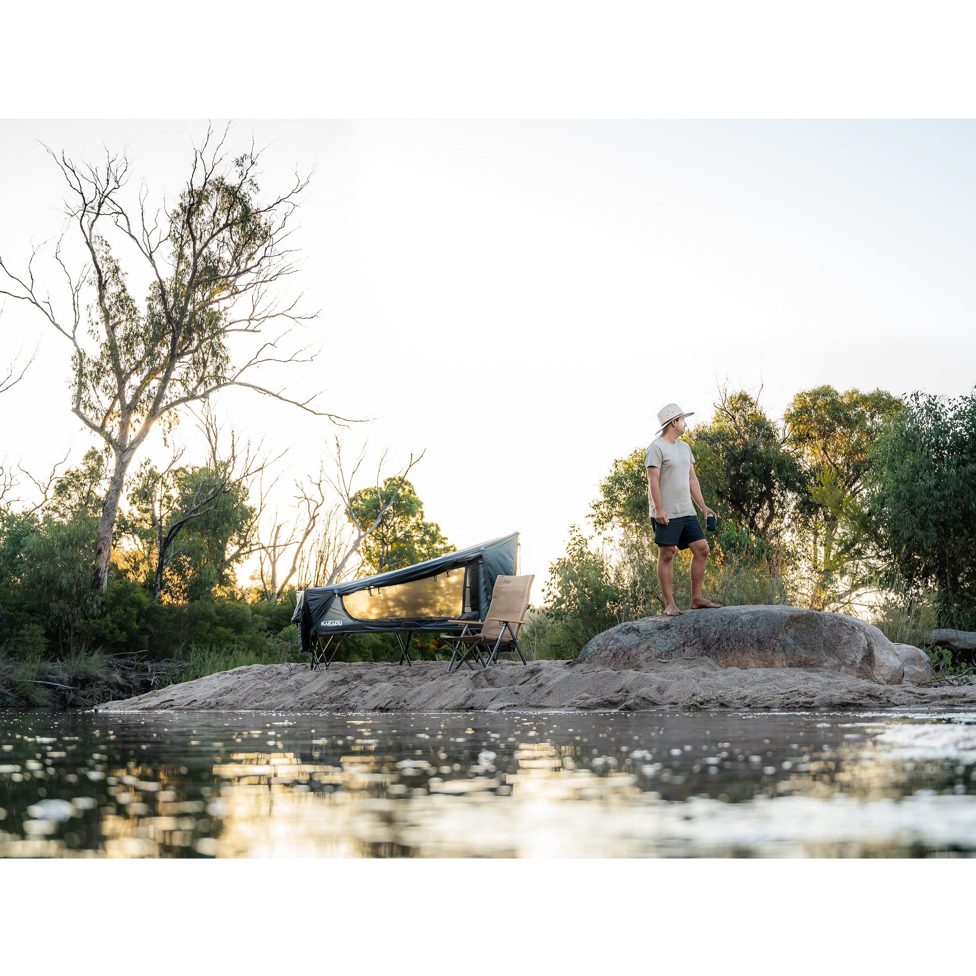 The Kakadu BlockOut® Cot Tent 1P is the ultimate camping cot tent for solo adventurers seeking comfort, convenience, and superior weather protection. Designed with BlockOut® technology, this premium cot tent reduces internal temperatures by up to 20 degrees and blocks 95% of light, ensuring a cooler and darker sleeping environment—even in the heat of the day.