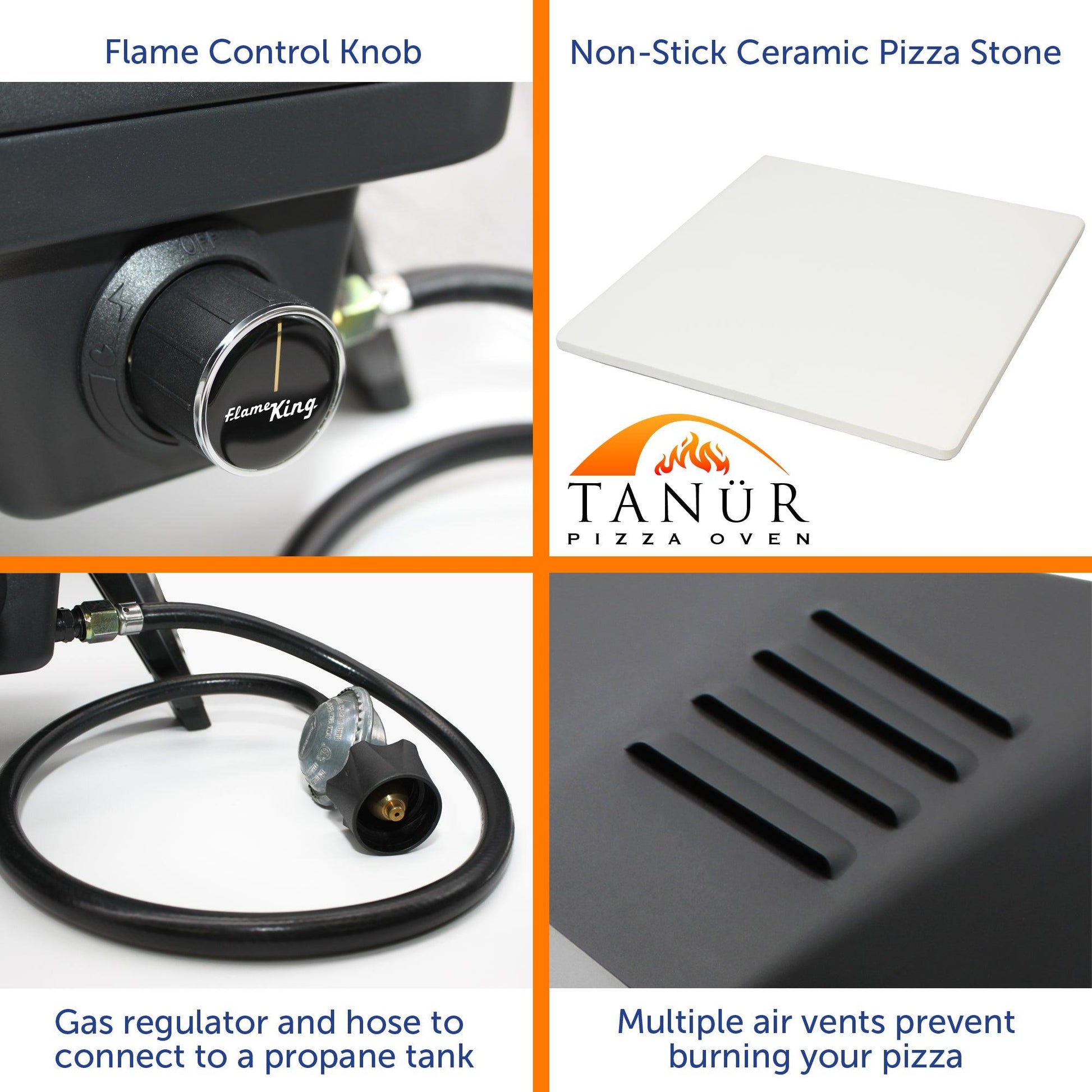 Flame King- Outdoor Portable 12-inch Propane Pizza Oven Gas With Stone
